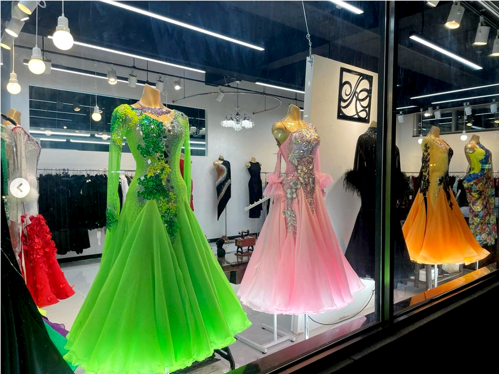 ポップコンアトリエ(PopconAtelier)社の衣装ドレスは、すべて韓国で製造しています。韓国には9店舗あり、アメリカやイギリスなど世界の競技会に出店すると、各国から大注目を浴びるダンスブランドでもあります。